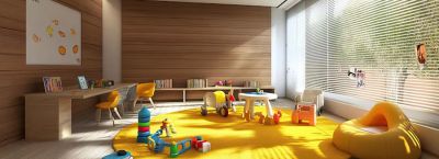 Используйте напольные покрытия с коэффициентом сцепления не менее 0,4 по стандарту DIN 51130. Кварцвиниловая плитка класса 43 (толщина 4,5 мм с защитным слоем 0,5 мм) выдерживает падение игрушек и не скользит даже после мытья.