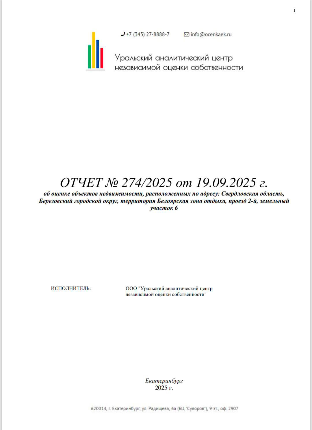 Отчет об оценке объекта